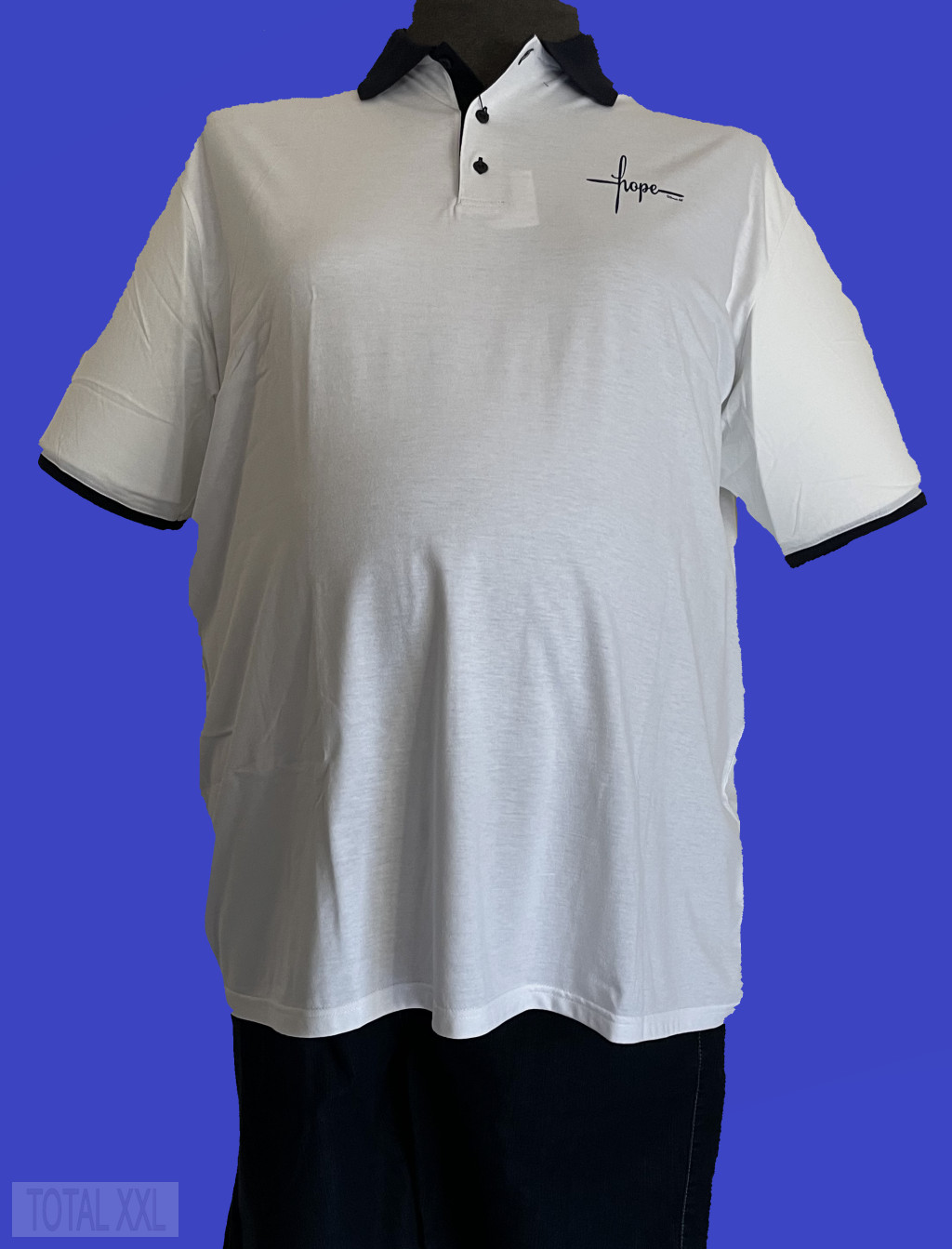 nyakkivágás: galléros, gombos, ujja végén sötétkék passzé